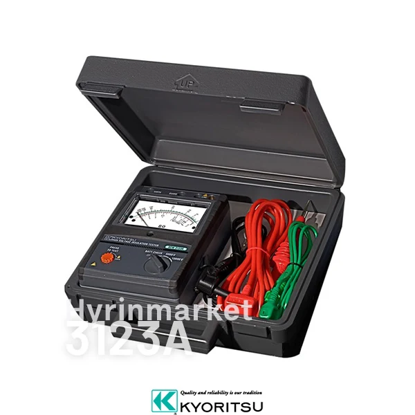 میگر آنالوگ کیوریتسو مدل KYORITSU 3123A یا تستر مقاومت عایق کیوریتسو ۳۱۲۳A از میگرهای آنالوگ کیوریتسو جهت تست عایق کابل و تجهیزات فشار متوسط و فشار قوی می باشند. امکانات و قابلیتهای میگر عقربه ای ۳۱۲۳A کیوریتسو شامل موارد زیر است: