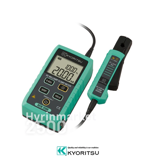 کلمپ آمپرمتر یا آمپرمتر انبری یا آمپرمتر چنگکی (clamp meter)، ابزاری است که امکان اندازه گیری جریان الکتریکی (آمپر)را بدون تماس و یا قطع هادی حامل جریان می دهد. برای استفاده از کلمپ متر کافیست قسمت چنگکی تجیهز را در اطراف سیم حامل جریان قرار دهید. سپس بدون نیاز به اتصال پراب و قرار دادن به صورت سری آمپر متر مقدار جریان را اندازه گیری کنید. شرکت کیوریتسو ژاپن به منظور ارائه انواع تجهیزات اندازه گیری با کیفیت و جلب رضایت مشتریان،از سال ۱۹۴۰ شروع به فعالیت نموده است. میلی کلمپ آمپر متر DC دیجیتال کیوریتسو مدل KYORITSU 2500 دستگاه اندازه گیری جهت تست آمپر DC در حد رنج های پایین و میلی آمپر با دقت بسیار بالا می باشد. این ابزار دارای امکانات زیر است: