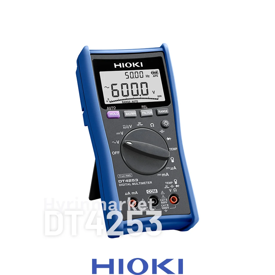 مولتی متر دیجیتال هیوکی مدل dt4253 یک ابزار ایمن و مطمئن جهت انجام تست الکتریکی و مخصوصا برای تست های دقیق و مرتبط با دستگاه های گرمایشی و تهویه هوا (HVAC) و دستگاه های گاز سوز طراحی شده است. مدل هیوکی DT4253 نرخ پاسخ سوپر فست و بسیار سریع دارد و با صحت ولتاژ %0.5± DC بهره گیری از سنسور کلمپی و دمایی با پهنای باند 40 هرتز تا 1000 هرتز در صنایع دیگری نیز کاربرد دارد. مدل DT4253 هیوکی نظیر مدل DT4252 از صفحه نمایش LCD چهار رقمی با ماکزیمم 6000 شمارش، بهمراه نور پس زمینه جهت خوانش بهتر در محیط تاریک، بارگراف و حالت نمایش دوتایی برای نمایش همزمان ولتاژ و فرکانس بهره می برد. همچنین قابلیت اندازه گیری True RMS و عملکرد فیلترهای پایین گذر جهت حذف هارمونیک ها و اندازه گیری صحیح شکل موج نیز در این مدل لحاظ شده است. علاوه بر این اندازه گیری مقاومت، ظرفیت خازنی، فرکانس، پیوستگی و تست دیود از جمله عملکرد های مشابه این مدل محسوب میشود. این مدل نیز اندازه گیری ولتاژ AC/DC را در لیست قابلیت های خود دارد ولی برخلاف مدل مشابه تنها از اندازه گیری جریان DC پشتیبانی می کند. از دیگر تفاوت های عملکردی این دو مدل اندازه گیری دما از C° -40.0 تا 400.0 °C و اتصال به سنسور کلمپی AC در هیوکی DT4253 است.