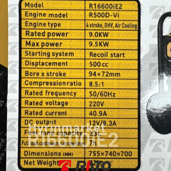 موتوربرق 9.5 کیلووات بنزینی راتو مدل R16600iE2 اینورتری